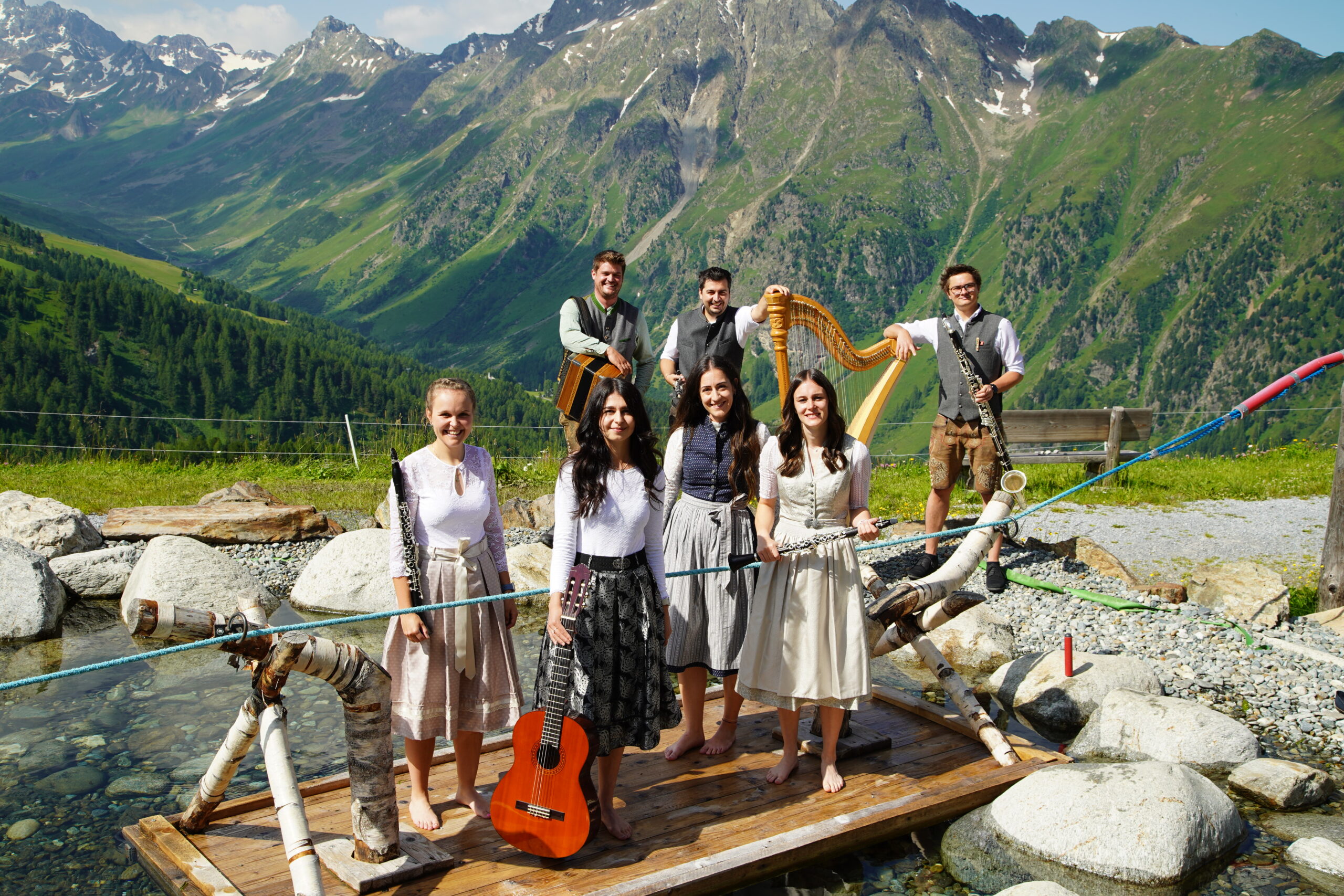 Holzk(n)opfmusi: Thomas Jehle: Klarinette, Bassklarinette | Nicole Salner: Klarinette | Raphaela Mark: Klarinette | Gabriel Walser: Bassklarinette | Johanna Juen: Harfe | Claudia Jehle: Gitarre | Michael Wolf: Steirische Harmonika